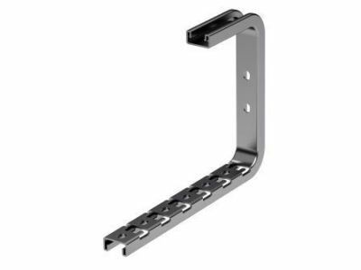 Консоль совместима исключительно с проволочными лотками серии F5 Combitech. Монтаж осуществляется без использования болтов - крепится за счёт зажимного механизма, который плотно фиксирует боковые грани лотка. Для установки требуется предварительно закрепить саму консоль к потолку или стене с помощью анкеров или химических дюбелей (не входят в комплект). Установка занимает менее 2 минут на одну точку крепления. Готовые точки крепления позволяют легко выстраивать прямые участки трассы или повороты под углом 90°.