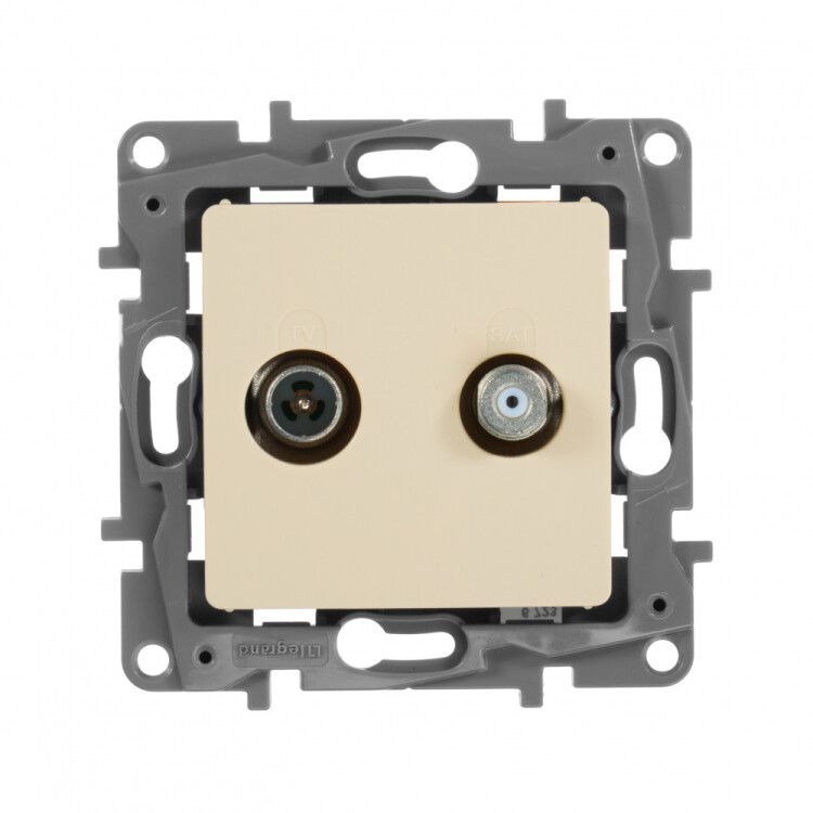 Розетка телевизионная TV/SAT двухкабельная слоновая кость от Legrand (серии Etika, артикул 672357) предназначена для организации сигнала от антенны и спутникового приемника в одной точке. Подходит для скрытой установки в жилых и офисных помещениях, где требуется одновременное подключение эфирного и спутникового ТВ.