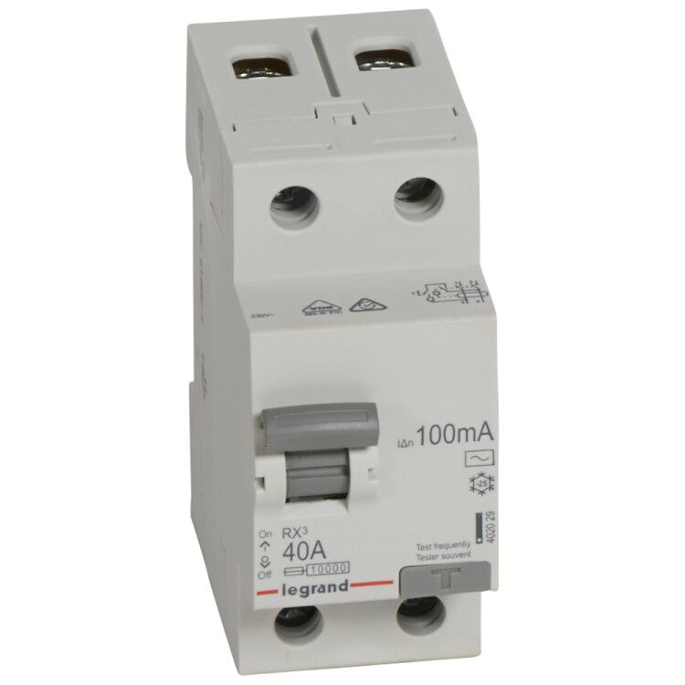 Выключатель дифференциальный (УЗО) RX3 2п 40А 100мА тип AC | 402029 Legrand