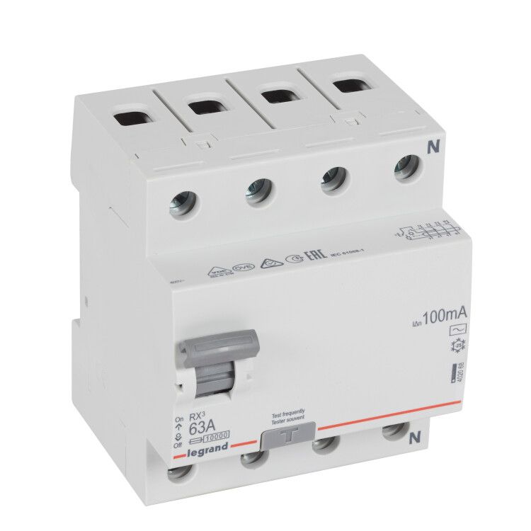 Выключатель дифференциального тока (УЗО) 4-полюсный 63А 100мА тип AC RX3 предназначен для автоматического отключения электроцепи при обнаружении утечки тока величиной 100 мА. Это предотвращает поражение людей электричеством и снижает риск возгорания из-за поврежденной изоляции. Применяется в трехфазных сетях 400 В - например, в распределительных щитах производственных цехов, жилых домов, офисов и объектов инфраструктуры. Подходит для защиты групповых линий, оборудования с большим потреблением энергии и систем, где требуется одновременная коммутация всех фаз и нуля.