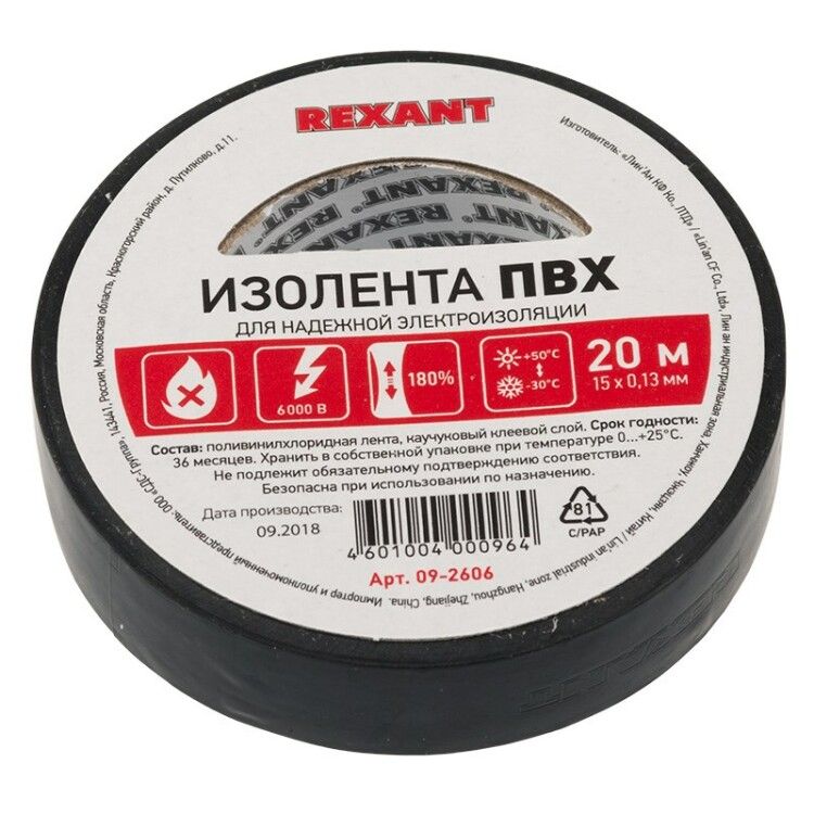 Изолента ПВХ 15 мм х 20 м, черная, упаковка 10 роликов | 09-2606 REXANT MEET не поставляется, возможно товар снят с производства, по запросу, наши инженеры помогут подобрать аналоги, замены.