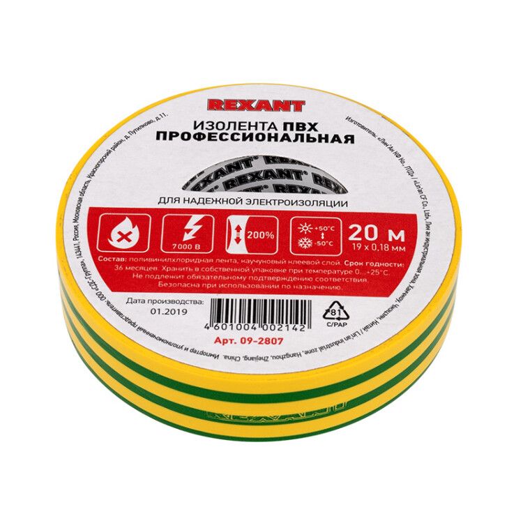 | Изолента ПВХ профессиональная 0,18х19 мм х 20 м, желто-зеленая (в упак. 10 шт.) | 09-2807 | REXANT | 25.02.2026 | Под заказ | 89,41 ₽ | шт. | от 30 дней |