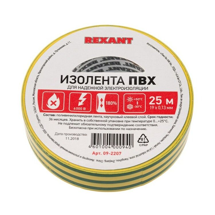 | Изолента 19мм (рул.25м) желт./зел. REXANT 09-2207 | 24.02.2026 | Под заказ | 50,17 ₽ | шт. | от 30 дней |