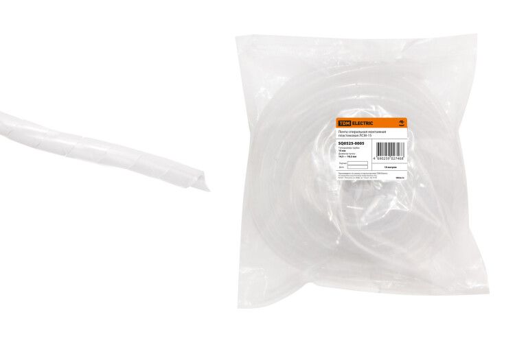 Лента спиральная монтажная пластиковая ЛСМ-15 от TDM ELECTRIC - это гибкий и прочный элемент для организации и фиксации кабельных жгутов в электроустановках. Артикул sq0525-0005 подходит для внутренней прокладки в шкафах, каналах и лотках, обеспечивая защиту от перегибов, трения и внешних воздействий.