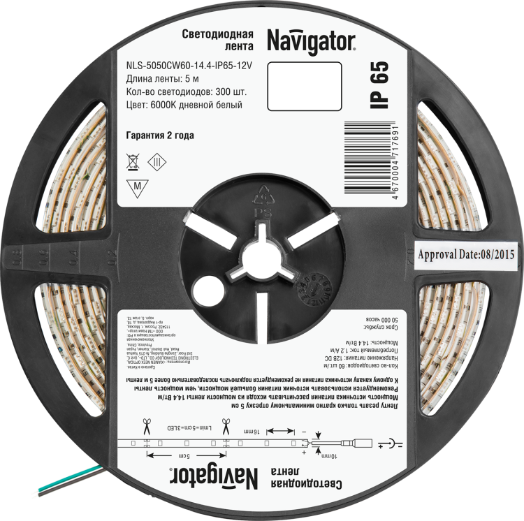 Лента светодиодная NLS-5050СW60-14,4-IP65-12V R5 14,4Вт 12В 6000К IP65 5м | 71769 Navigator NLS-5050 19428