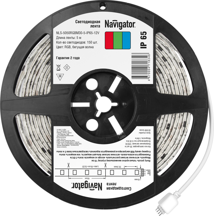 Лента светодиодная NLS-5050RGBM30-5-IP65-12V - гибкий, самоклеящийся источник света с регулируемой цветовой температурой RGB, предназначенный для акцентной подсветки внутри помещений и на улице. Бренд Navigator предлагает эту модель как надежный вариант для коммерческих и бытовых задач, где важна долговечность и защита от внешних факторов.