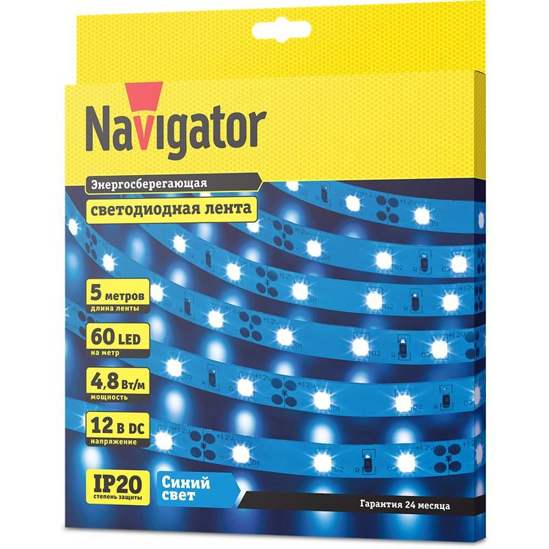 Лента светодиодная NLS-3528B60-4.8-IP20-12V R5 от бренда Navigator - гибкий источник холодного синего света с плотностью 60 светодиодов на метр, подходящий для внутренней подсветки интерьера, мебели, ниш и декоративных элементов. Благодаря клеевому слою и возможности резки каждые 50 мм, лента легко адаптируется под сложные формы.