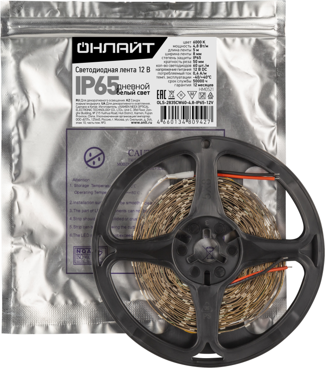 Лента светодиодная 80 942 OLS-2835CW60-4.8-IP65-12V (уп.50м) ОНЛАЙТ 80942 Navigator