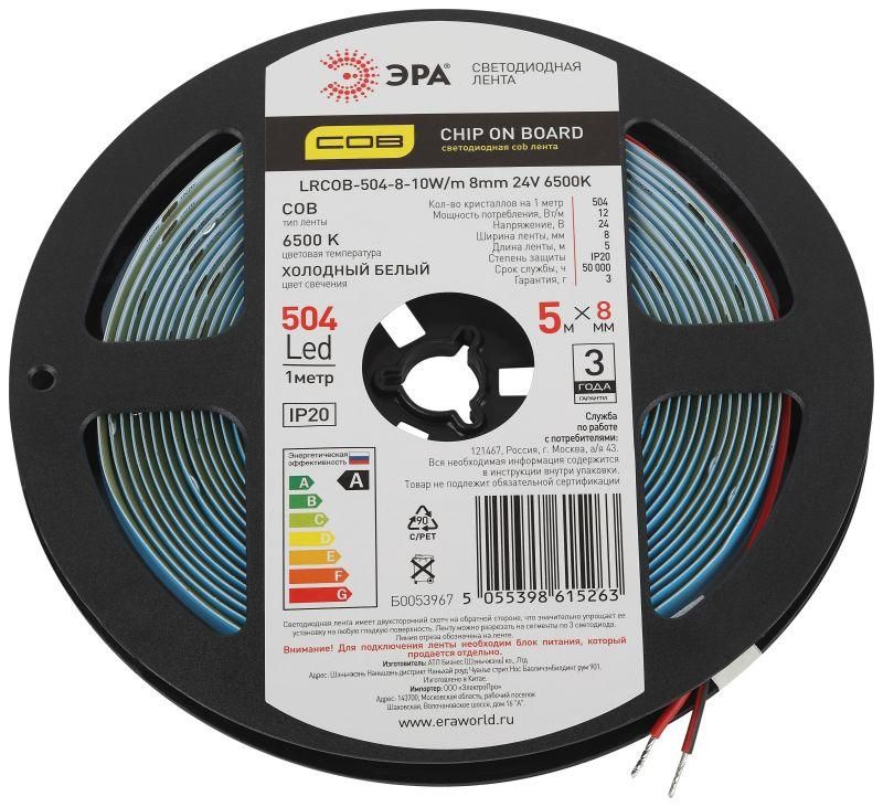 Лента светодиодная 10Вт/м 24В 6500К IP20 504LED/м LRCOB-504-8-10W/m 8mm 24V 6500K - Б0053967 ЭРА