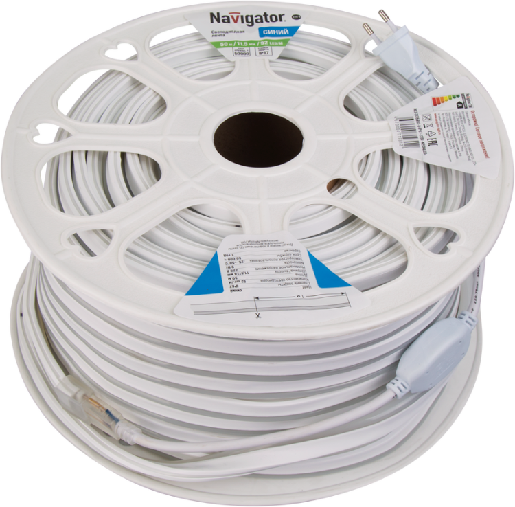 Лента светодиодная NLS-2835B92-9-IP67-220V-NEONLED от бренда Navigator - это гибкий источник света с напряжением 220 В, имитирующий эффект неоновой подсветки. Подходит для декоративной подсветки внутри помещений и на улице, легко монтируется и работает в широком диапазоне температур. Артикул NLS-2835B92-9-IP67-220V-NEONLED соответствует серии NLS-NEONLED 220V.