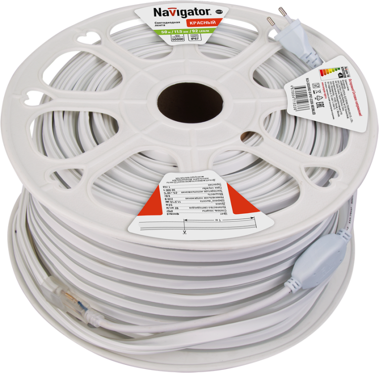 Лента светодиодная NLS-2835R92-9-IP67-220V-NEONLED 9Вт 220В красный IP67 - это готовое решение для яркого и долговечного освещения в условиях повышенной влажности и запыленности. Бренд Navigator предлагает эту модель в серии NLS-NEONLED 220V, где лента работает напрямую от сети 220 В, исключая необходимость в внешнем блоке питания.