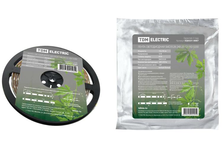 Каждый отрезок светодиодной ленты промаркирован знаком TDM, что гарантирует ее оригинальность и защиту от подделок. На данную ленту предоставляется гарантия 2 года.