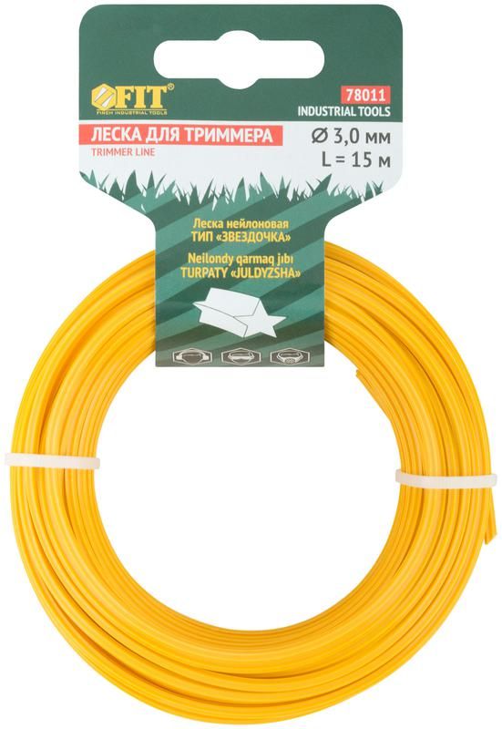 Леска для садовых триммеров 3.0 мм х 15 м от бренда FIT (артикул 78011) предназначена для замены изношенной рабочей нити в бытовых и полупрофессиональных триммерах. Её звездообразное сечение обеспечивает эффективную резку даже жесткой растительности, а длина 15 метров снижает частоту замены во время работы.