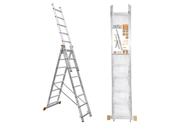 Лестница алюминиевая, ЛА3х10, 3х секционная х 10 ступеней, h=6270 мм, Народная | SQ1028-0202 TDM