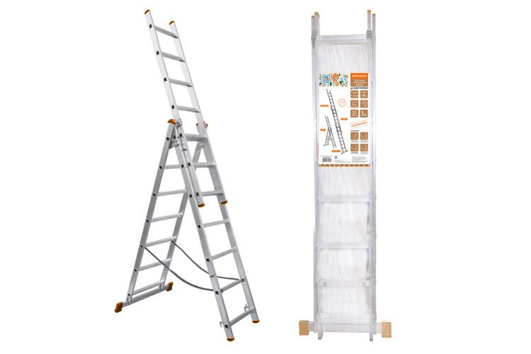 Лестница алюминиевая, ЛА3х7, 3х секционная х 7 ступеней, h=4480 мм, Народная | SQ1028-0203 TDM
