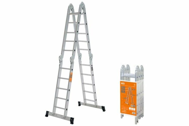 - Многофункциональность - лестница может быть трансформирована в приставную лестницу, согнутую лестницу, стремянку или помост, что позволяет использовать ее в различных ситуациях.