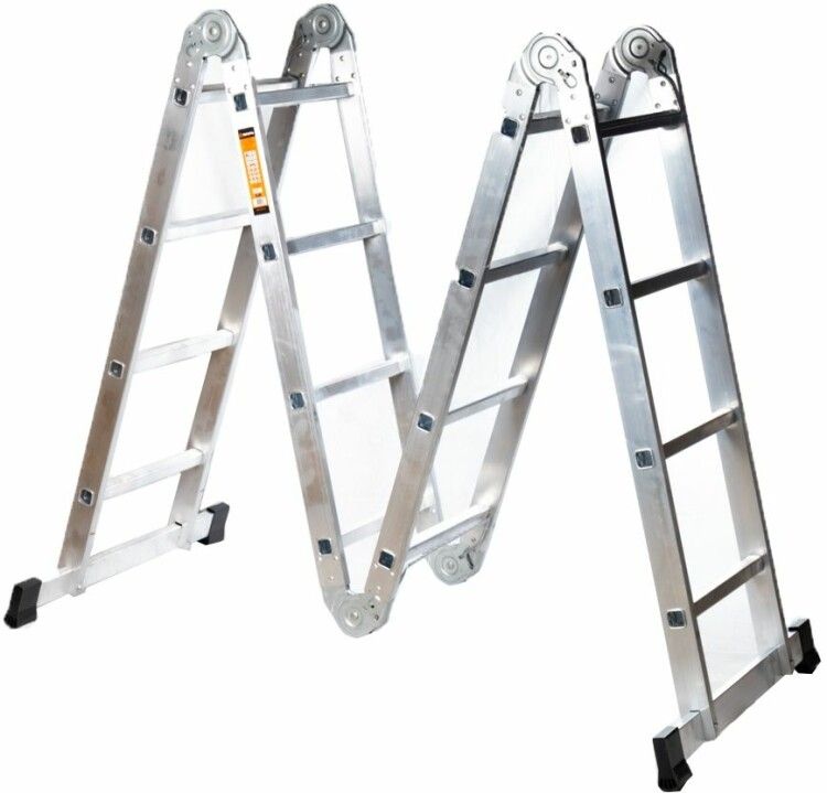 Лестница-трансформер ВИХРЬ ЛТА 4х4 - это складная алюминиевая лестница с четырьмя секциями, предназначенная для работы на высоте в условиях строительства, ремонта и домашнего использования. Её компактная трансформация, прочная конструкция и максимальная нагрузка 120 кг делают её удобным решением для монтажников, слесарей и домашних мастеров.