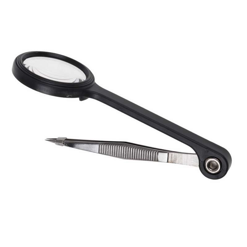 Идеальна для ситуаций, когда нельзя трогать объект руками - пинцет фиксирует изделие, а лупа даёт чёткий обзор.