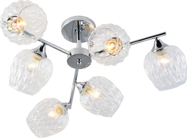 Люстра Rivoli 3139-306 - это потолочный светильник с шестью лампами E27, предназначенный для равномерного и мягкого освещения жилых помещений. Модель выполнена из стали с хромированным покрытием и структурированным стеклом, обеспечивает классическое, но современное решение для гостиных, спален и кухонь.