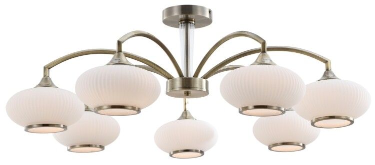 Люстра 7 ламп E27 60 Вт классика используется для основного освещения в комнатах средней и большой площади - гостиных, холлов, столовых, холлах многоэтажных домов. Благодаря круговому расположению семи плафонов обеспечивается равномерное рассеивание света вниз, без резких теней. Подходит для интерьеров в классическом, прованском или vintage-стиле благодаря античному цвету бронзы и рифленому стеклу.