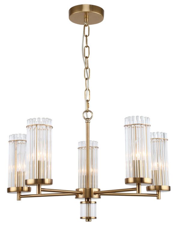 Люстра 5 ламп E14 40 Вт классика Rivoli - это потолочный светильник с пятью лампами накаливания, предназначенный для создания мягкого равномерного освещения в жилых помещениях. Модель выполнена в классическом стиле с латунным корпусом и стеклянными плафонами, подходит для установки в гостиных, спальнях и кабинетах. Артикул б0055529 принадлежит к коллекции Rivoli Dolly, где все элементы оформлены в единой эстетике.