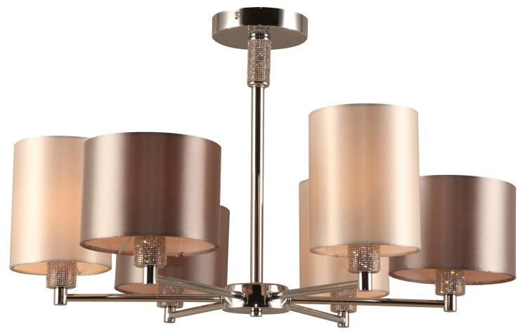 Потолочная люстра Rivoli 6 ламп цоколь E14 40 Вт (артикул б0055618) - классический светильник для бытового освещения в жилых помещениях. Корпус из хромированной стали и текстильные плафоны обеспечивают мягкое рассеянное свечение, подходящее для гостиных и спален.