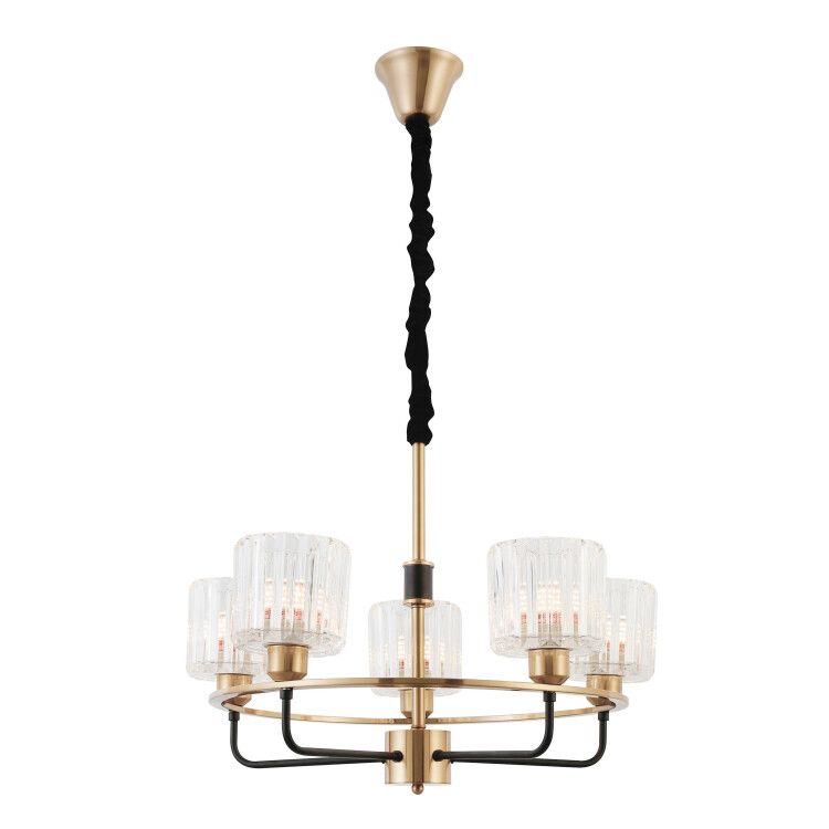 Люстра 5 ламп E27 40 Вт хрусталь классика Rivoli (артикул б0052468) - подвесной светильник с пятью прозрачными стеклянными плафонами и латунным корпусом, предназначенный для создания мягкого рассеянного света в жилых помещениях. Продукт серии Rivoli Maria сочетает классический дизайн с надежной конструкцией и совместим с лампами накаливания до 40 Вт каждая.