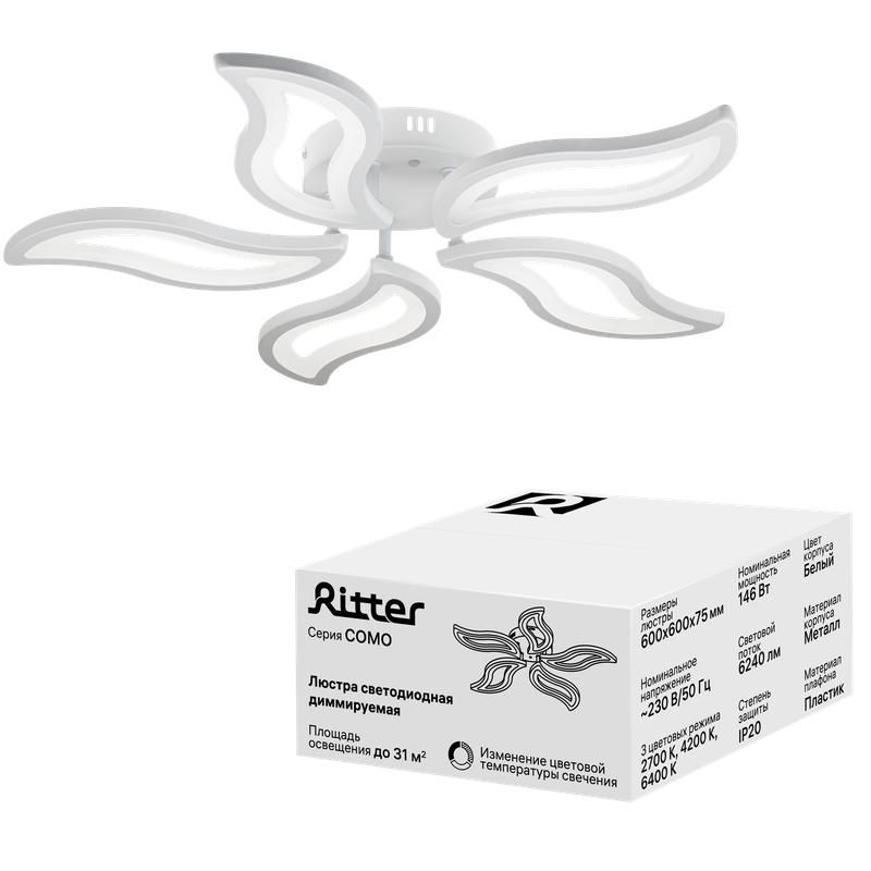 | Люстра потолочная светодиодная диммируемая COMO 600х600х75мм 146Вт 2700К/4200К/6400К 31кв.м бел. Ritter 51934 2 | 15.03.2026 | 1 шт. | 2 733,98 ₽ | шт. | от 9 дней |