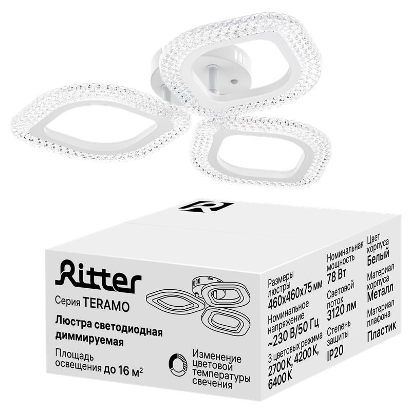 | Люстра потолочная светодиодная диммируемая TERAMO 460х460х75мм 78Вт 2700К/4200К/6400К 16кв.м бел. Ritter 52174 1 | 15.03.2026 | 1 шт. | 1 574,18 ₽ | шт. | от 10 дней |