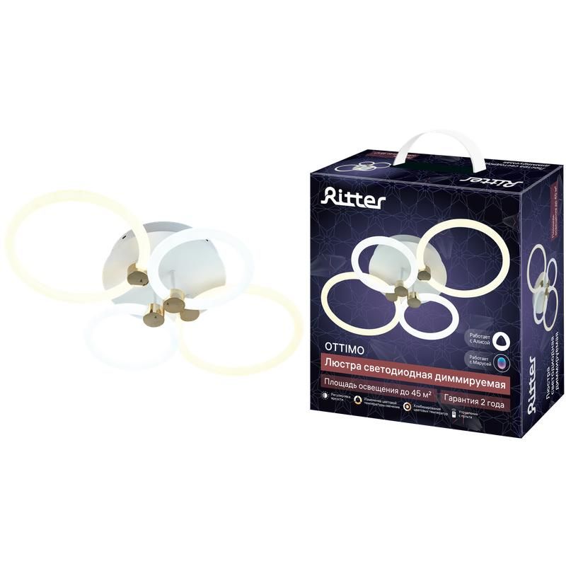 Люстра светодиодная Ritter 51612 9 - это энергоэффективный источник света с возможностью регулировки цветовой температуры, подходящий для освещения помещений площадью до 45 м². Устройство сочетает тёплый и холодный белый свет, обеспечивая гибкую настройку атмосферы в офисах, залах и жилых комнатах.