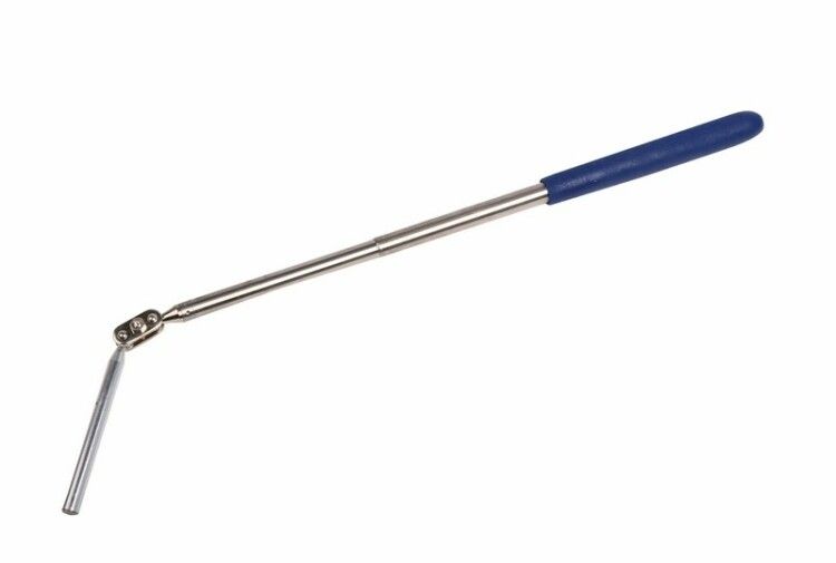 Телескопический магнит REXANT 12-4813 с шарнирным механизмом предназначен для извлечения мелких металлических предметов из труднодоступных зон - например, из глубины труб, под днищем автомобилей или внутри электрооборудования. Устройство сочетает регулируемую длину, поворотный шарнир и надёжное удержание до 450 граммов, что делает его практичным инструментом для профессионалов и домашнего использования.