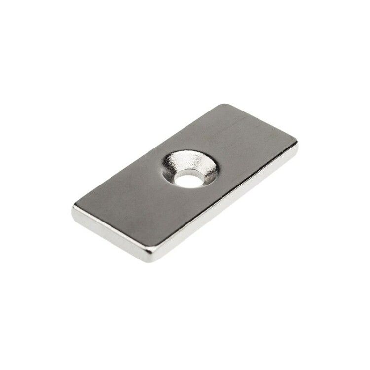 Две зенковки позволяют равномерно распределить усилие при креплении винтами, снижая риск растрескивания. Магнит не имеет внешних выступов - его можно утопить в корпусе или панели, сохранив эстетичный вид. Покрытие Ni-Cu-Ni обеспечивает долгую защиту от окисления, даже при повышенной влажности.