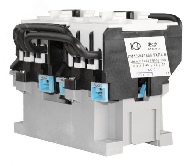 Контактор электромагнитный реверсивный УХЛ4 В 380В 40А от КЗЭА (артикулы 050550200вв380000010 и пм12-040550) предназначен для дистанционного управления трёхфазными двигателями - включает, выключает и меняет направление вращения. Подходит для стационарных систем с напряжением до 660 В.
