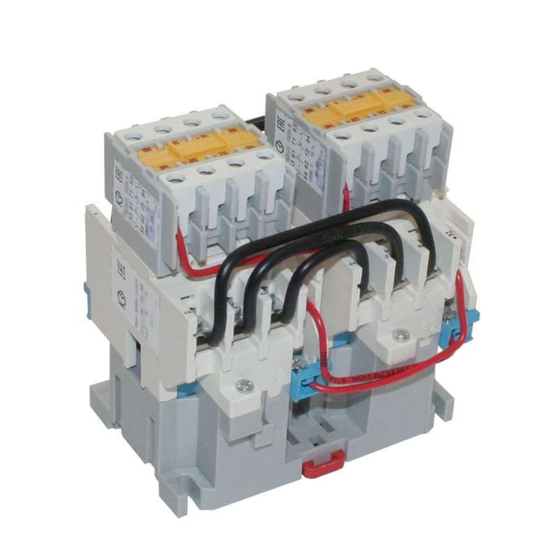 - Совместим с большинством стандартных схем реверса двух контакторов (A+B).