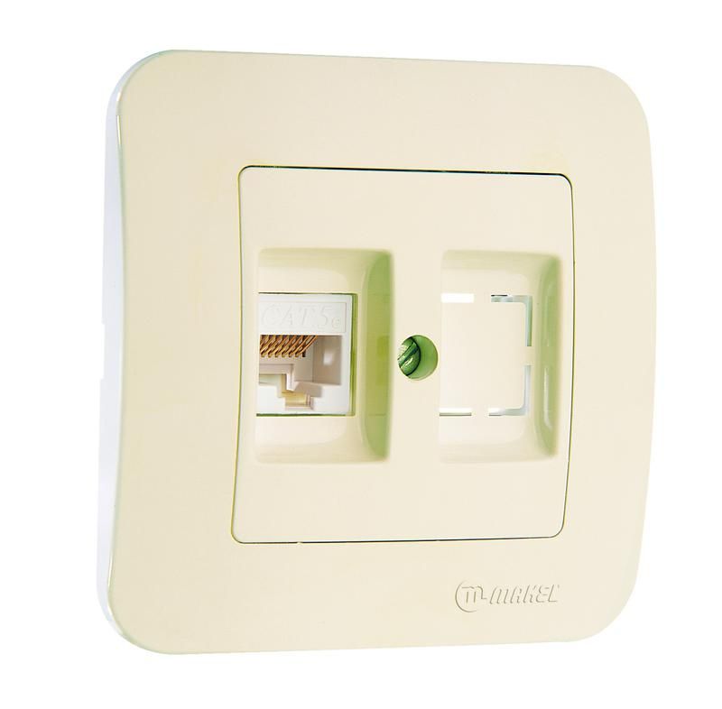 Эта розетка используется для подключения оборудования, работающего по протоколу Ethernet - компьютеров, принтеров, IP-камер, телефонов VoIP, коммутаторов и других сетевых устройств. Гнездо позволяет подключить стандартный RJ45-штекер кабеля Cat 5e. Устанавливается в стеновые коробки, как обычная электрическая розетка, и применяется там, где требуется организовать проводную сеть без лишних переходников.