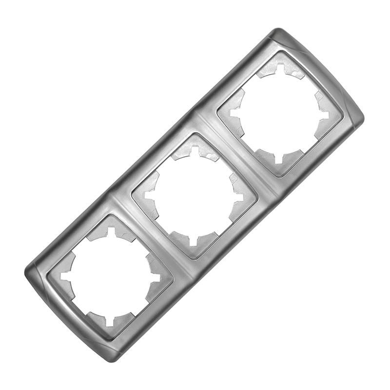 Декоративная рамка трёхместная горизонтальная серебристая Universal МР003Г-S предназначена для маскировки электроустановочных изделий серии «Маргарита» в бытовых и офисных интерьерах. Она совмещает функциональную защиту с эстетичным дизайном, обеспечивая чёткий визуальный контур для розеток, выключателей и диммеров.