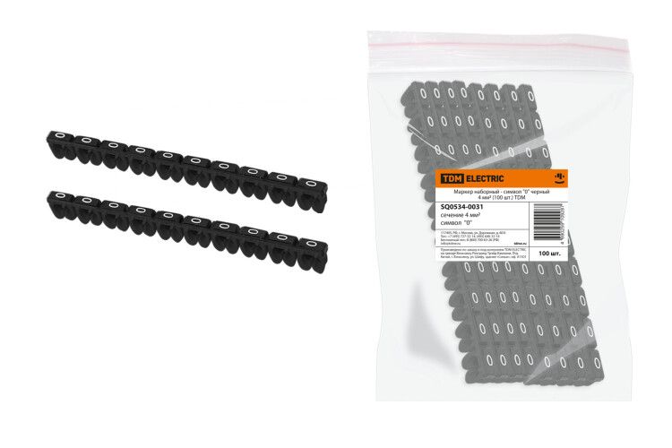 Маркер наборный TDM ELECTRIC sq0534-0031 - это компактная пластиковая метка с цифрой «0» для маркировки проводов сечением 4 мм2. Набор из 100 единиц позволяет быстро идентифицировать цепи в щитах, на станциях и в промышленных системах. Каждый маркер фиксируется защёлкой, не требует инструментов и выдерживает высокую температуру и химические воздействия.