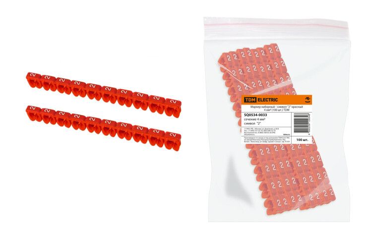 Маркер наборный TDM ELECTRIC sq0534-0033 - это набор из 100 красных пластиковых меток с цифрами для маркировки проводов сечением 4 мм2. Применяются в электрощитах, промышленных установках и системах электроснабжения для быстрой идентификации кабелей после монтажа.
