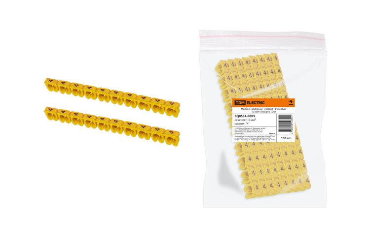 Маркер наборный - символ "4" желтый 1,5 мм2 (150 шт.) | SQ0534-0005 TDM