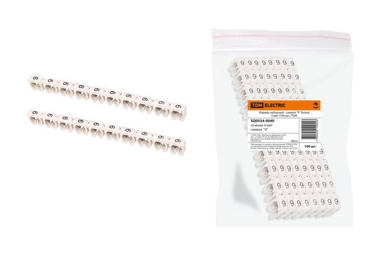 | Маркер наборный - символ "9" белый 4 мм2 (100 шт.) | SQ0534-0040 | TDM | 04.03.2026 | Под заказ | 237,17 ₽ | уп. | от 30 дней |