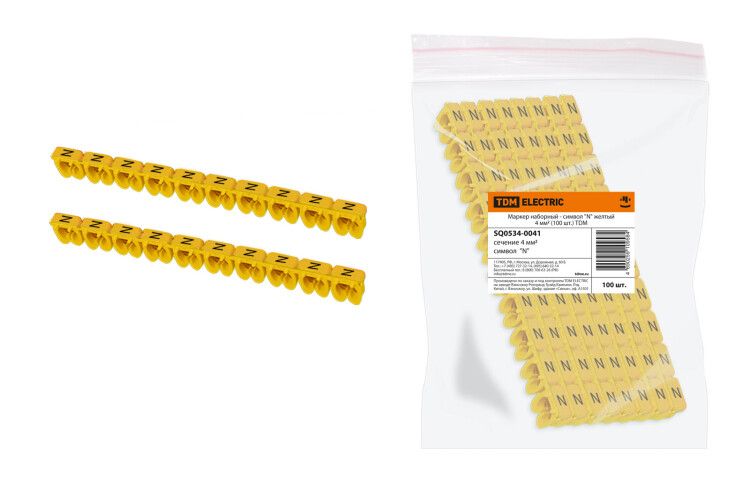 Маркер наборный - символ "N" желтый 4 мм2 (100 шт.) | SQ0534-0041 TDM