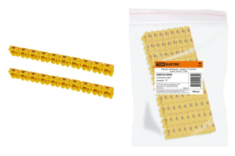 | Маркер наборный - символ "4" желтый 6 мм2 (100 шт.) | SQ0534-0050 | TDM | 04.03.2026 | Под заказ | 297,43 ₽ | уп. | от 30 дней |