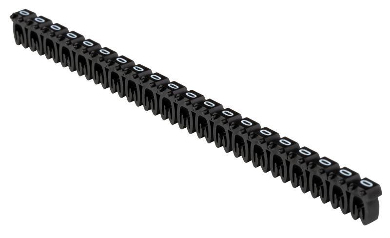 Маркер кабельный открытого типа KE 0,75-1,5 мм2 символ '0' используется для обозначения жил кабелей и проводов цифрами. Применяется в электрощитах, распределительных коробках, на пультах управления, станках и других устройствах, где требуется чёткая идентификация цепей. Подходит как для новых монтажей, так и для реконструкций существующих сетей.