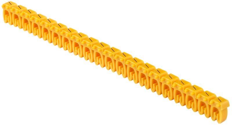 Маркер открытого типа KE 0,75-1,5 мм2 символ "/" (200 шт/упак) монтируется без инструментов. Открытый профиль позволяет просто защелкнуть его на готовую жилу после её подготовки - достаточно раздвинуть корпус и поместить провод внутрь. Защелка обеспечивает прочное удержание даже при вибрациях. Маркер совместим с медными и алюминиевыми жилами, имеющими изоляцию до 3 мм в диаметре. Не подходит для толстых кабелей свыше 3 мм или для многожильных проводов с крупным внешним диаметром.
