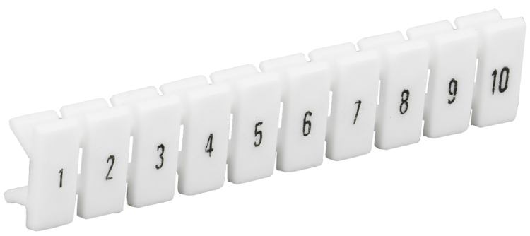 Маркеры для клеммных соединений КПИ-10 мм2 с нумерацией №№ 1-10 совместимы исключительно с клеммами серии КПИ, имеющими специальные пазы для защелкиваемых маркеров. Установка происходит просто: каждый элемент маркера вставляется в паз до характерного щелчка. Отдельные цифры можно отламывать по необходимости - так формируется нужный набор номеров. Не требуют сверления, клея или саморезов. Для правильной работы важно, чтобы глубина паза клеммы соответствовала толщине маркера - проверьте соответствие перед монтажом.