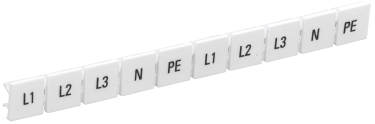 Маркеры для клеммной колодки КПИ-10 мм2 с символами L1, L2, L3, N, PE применяются для обозначения фаз (L1–L3), нулевого рабочего (N) и защитного заземления (PE) на клеммных сборках пружинного типа. Удобны при комплектации щитов автоматического управления, силовых шкафов, распределительных устройств и других объектов, где требуется быстрая визуальная идентификация контактов.
