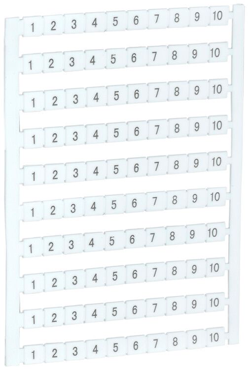 Маркеры для кабельных вводов и выводов 4/16 мм2 с нумерацией № 1-10 применяются для маркировки винтовых клеммных сборок, особенно в распределительных устройствах и силовых щитах. Они удобны при работе с группами клемм, где важно различать цепи по номерам - например, в автоматических выключателях, контакторах или модульной аппаратуре. Подходят для установки на клеммы КВИ и аналогичные типы с подходящими пазами.