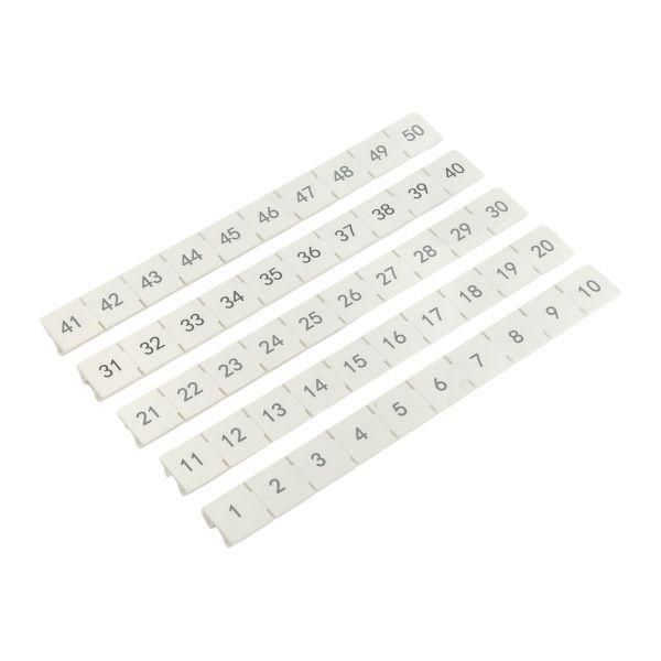 Маркировка для клемм 10/16/35/90 UT 1-50 используется для обозначения номеров клемм на винтовых клеммных колодках серии UT. Позволяет легко определить, какой провод подключен к какой клемме - особенно важно при обслуживании, диагностике и модернизации электрических цепей. Применяется в электрических щитах, автоматических станках, конвейерах, системах управления и других объектах с множеством соединений.