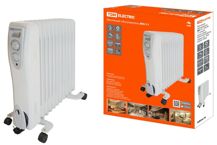 Масляный обогреватель МО-11, 2500 Вт, 11 секций, регул. мощн. (850/1650/2500 Вт), термостат, | SQ2501-0903 TDM