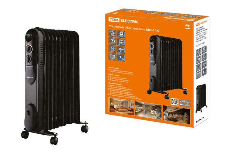 Масляный обогреватель МО-11К, чёрный, 2500 Вт, 11 сек, рег. мощ. (1000/1500/2500 Вт), термостат, | SQ2501-0906 TDM